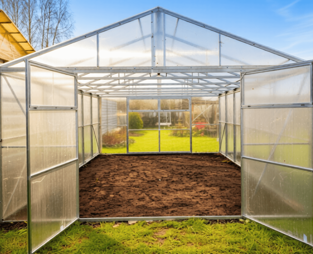 - Удобная ширина 4 м — позволяет комфортно разместить 3–4 грядки + удобный проход
